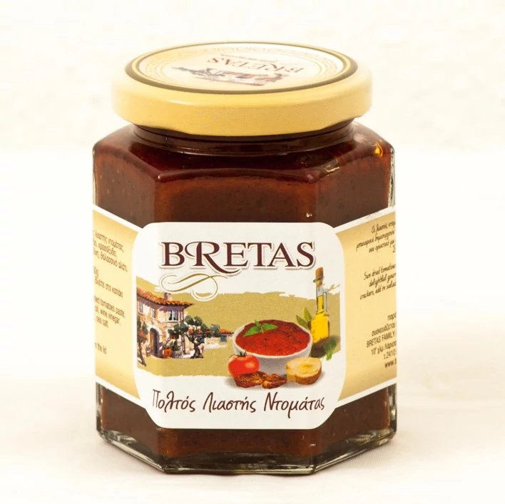 Összetétel: napszárított paradicsom (70,5%),Napraforgó olaj, olíva olaj, vörösbor borecet, fűszernövények, szőlőmust, tengeri só. Kalória/100 g 430, Fehérje/ 100 g 8, Zsír/ 100 g 3, Szénhidrát/ 100 g 36.