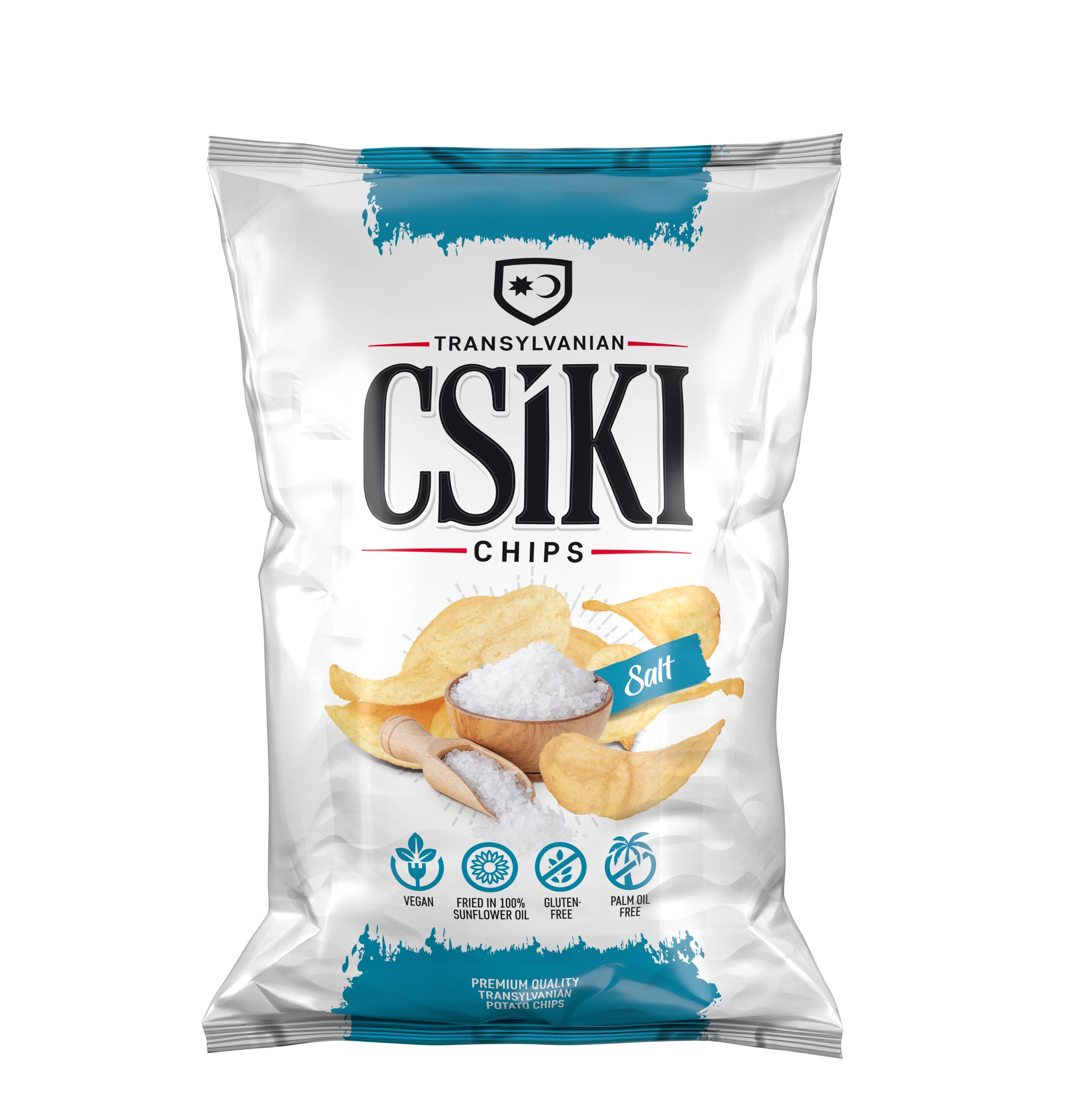 Sült burgonya csipsz, sós ízesítésű, a szeletek vastagsága 1–1,5 mm között, ropogós állagú.