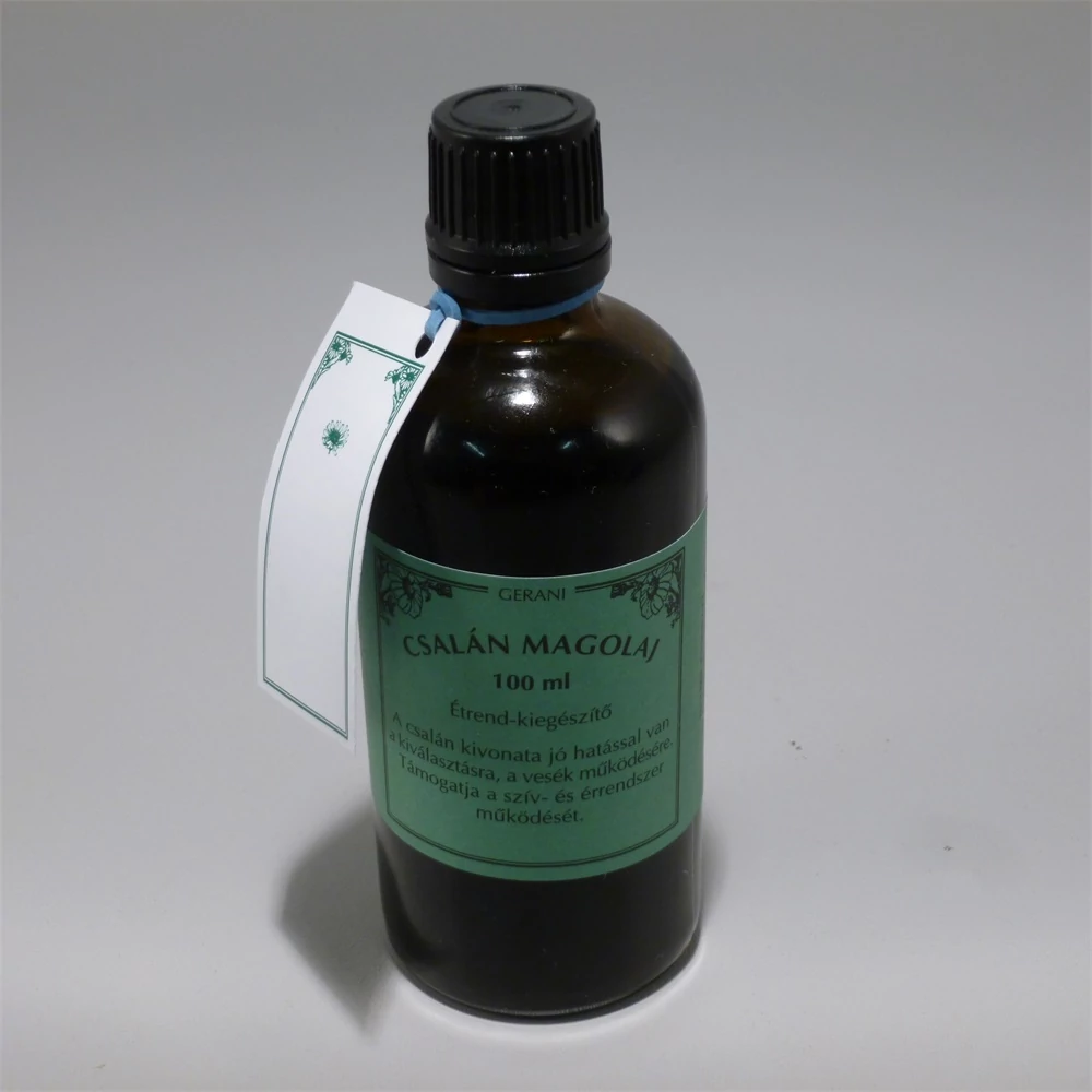 A csalánmagolaj hatása sokoldalú. Fogyasztása csökkenti a vérszérum koleszterinjét. Egyben gátolja a koleszterin élelmiszerekből történő felszívódását. Csökkenti a magas vérnyomást, és jótékony hatású a köszvényben szenvedők vér-húgysavtartalmának csökkentésében. Hatóanyaga vízhajtó, roboráló és általános vitaminpótló. Bőségesen tartalmaz A,B,C,F,K U vitaminokat. Jelentős az ásványi anyag, valamint ezen belül a nyomelemek mennyisége.