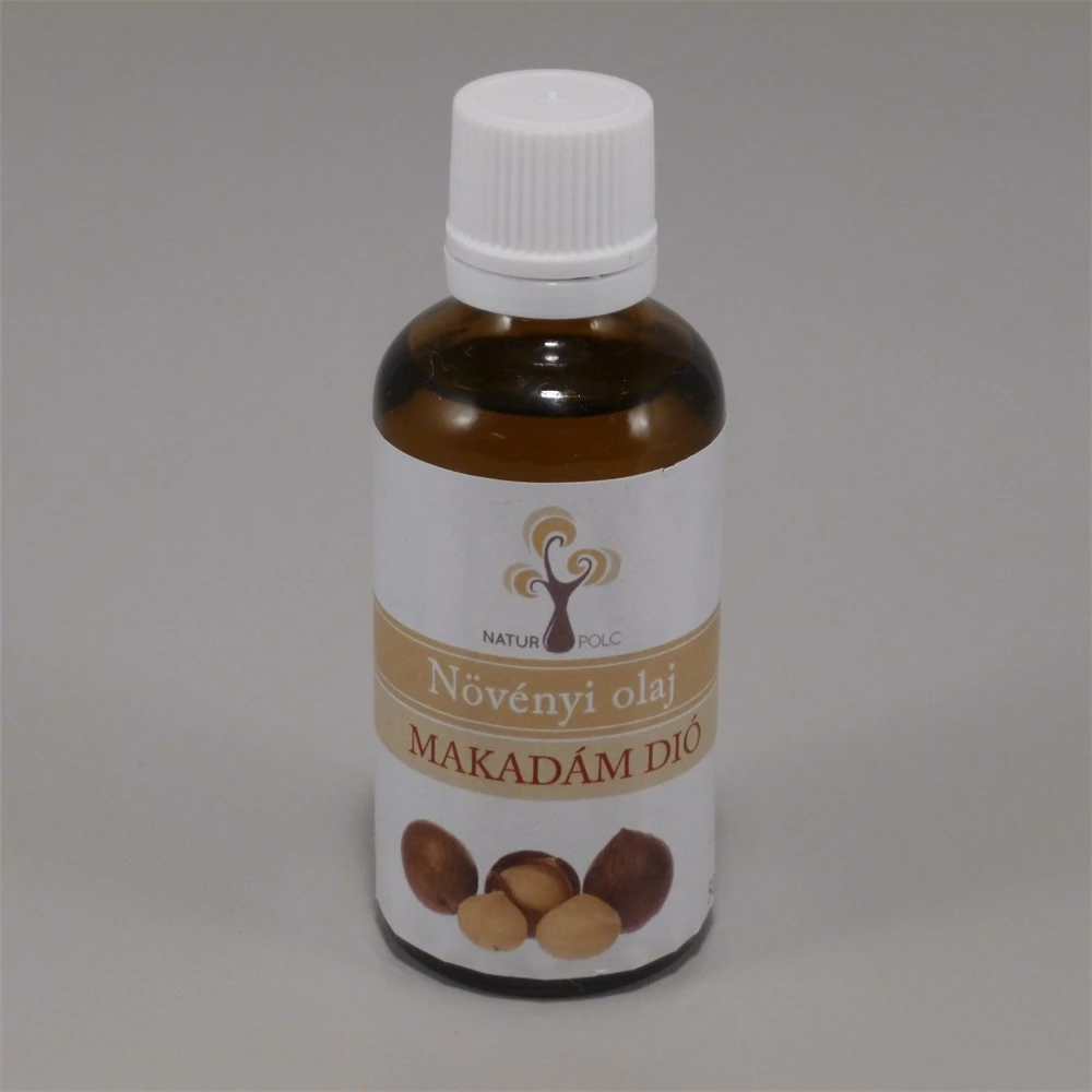 NATURPOLC MAKADÁMDIÓ OLAJ: A megjelenése jellemzően világos, aranysárgás színű , enyhe , de jellegzetes szagú . Magasabb koncentrációjú, egyszeresen telítetlen zsírsavakban gazdag, elsősorban palmitolsavban és olajsavban. Az avasodással szemben ellenálló. A makadámdió olaj egy sokoldalú hordozó olaj, amelynek alkalmazási köre széles mind a kulináris mind a kozmetikumok világában. Kiválóan hasznosítható az otthoni serpenyős sütésnél, illetve pácok készítéséhez .Gazdagítja és fokozza a természetes élelmiszerek ízét, és aromáját. Mély sütéshez (bő olaj) nem ajánlott.! A makadámdió olaj ideális összetevője egy sor kozmetikai terméknek, beleértve a szappanokat , masszázs olajokat , balzsamokat , testápolókat és krémeket. Sokan úgy gondolják, hogy a makadámdió olaj hasonlóan működik, mint az emberi faggyú , amely természetes módon védi és ápolja a bőrt. Az olaj regeneráló tulajdonságainak köszönhetően csodálatos hatással van a sérült bőrre, és minőségi összetevő egy új termék előállítása során.