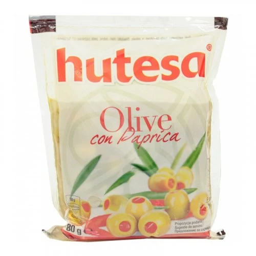 Összetétel: zöld olajbogyó, víz, paprika krém 18% (paprika,stabilizátor: natrium alginat, sűrítő anyag: guar gumi, szílárdító anyag: kalcium-klorid), étkezési só (max7%), savanyúságot szabályzó anyag: tejsav Kalória/ 100 g 123, Fehérje/ 100 g 0,9, Zsír/ 100 g 13, Szénhidrát/ 100 g 3.