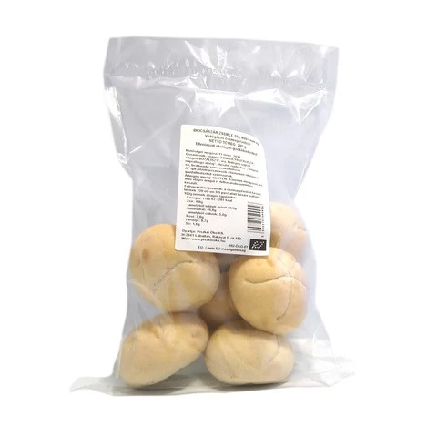Élvezze a friss péksüteményt, amikor Ön szeretné! A Piszkei Öko BIO védőgázas zsemlénket néhány perc alatt kisütheti, így bármikor finom péksüteményt varázsolhat családja asztalára! Felhasználási javaslat: a csomagolásból kivett zsemléket 220 Celsius-fokon kb. 5 perc alatt készre sütheti. Összetevők: világos tönkölybúzaliszt*, világos búzaliszt*, víz, hidegen sajtolt napraforgó étolaj*, élesztő, nádcukor*, tengeri só, lisztkezelő szer: aszkorbinsav, csomagológázok: CO2 gáz keveréke. A*-gal jelölt összetevők ellenőrzött ökológiai gazdálkodásból származnak. Energia: 1188KJ / 281Kcal Zsír: 4,8g, melyből telített zsírok: 0,6g Szénhidrát: 49g, ebből cukrok: 3g Rost: 3,8g Fehérje:8,7g Só: 1,6g