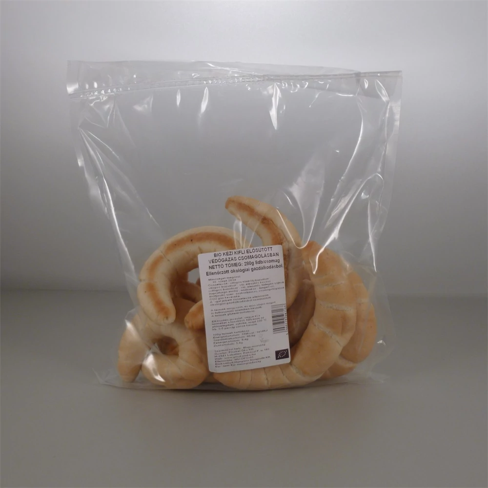 PISZKE BIO KÉZI KIFLI 8 DB VÉDŐGÁZZAL: A Piszkei Öko Kft. 1996-ban kezdte el a teljesőrlésű BIO gabonából készült kenyerek és sütemények készítését. Az országban fellelhető legjobb minőségű, a Biokontroll Hungária Kht. által szigorúan ellenőrzött, vegyszermentes gabonákat és magvakat használják fel. Saját malmukban közvetlenül sütés előtt őrölik a gabonát, így az maradéktalanul megőrzi a benne lévő vitaminokat, ásványi sókat, nyomelemeket. Termékeiket tej és tojás felhasználása nélkül készítik, így tej-, tojás allergiások és vegetáriánusok is fogyaszthatják a finomságokat.
