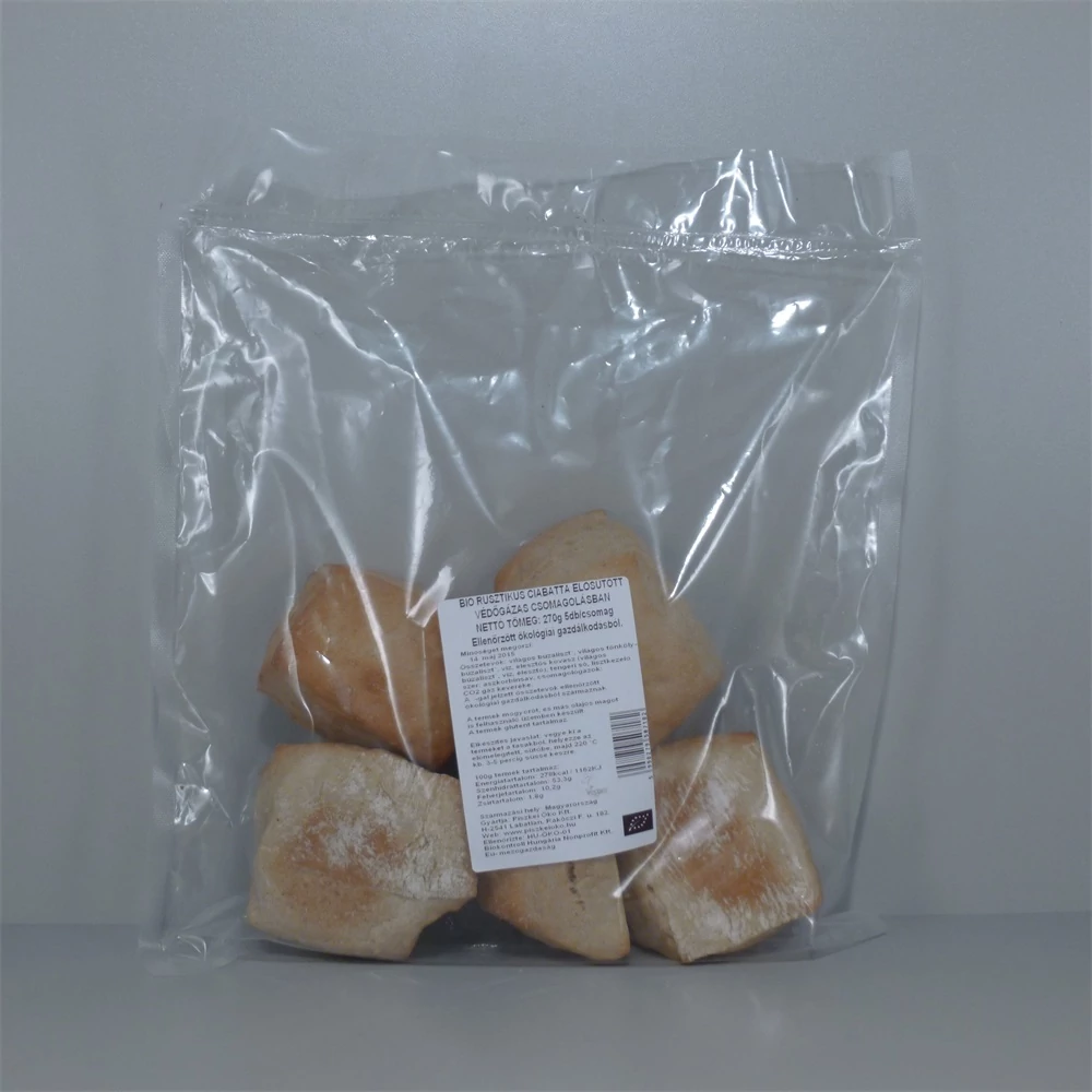 PISZKE BIO RUSZTIKUS CIABATTA 5DB VÉDŐGÁZZAL: A Piszkei Öko Kft. 1996-ban kezdte el a teljesőrlésű BIO gabonából készült kenyerek és sütemények készítését. Az országban fellelhető legjobb minőségű, a Biokontroll Hungária Kht. által szigorúan ellenőrzött, vegyszermentes gabonákat és magvakat használják fel. Saját malmukban közvetlenül sütés előtt őrölik a gabonát, így az maradéktalanul megőrzi a benne lévő vitaminokat, ásványi sókat, nyomelemeket. Termékeiket tej és tojás felhasználása nélkül készítik, így tej-, tojás allergiások és vegetáriánusok is fogyaszthatják a finomságokat.