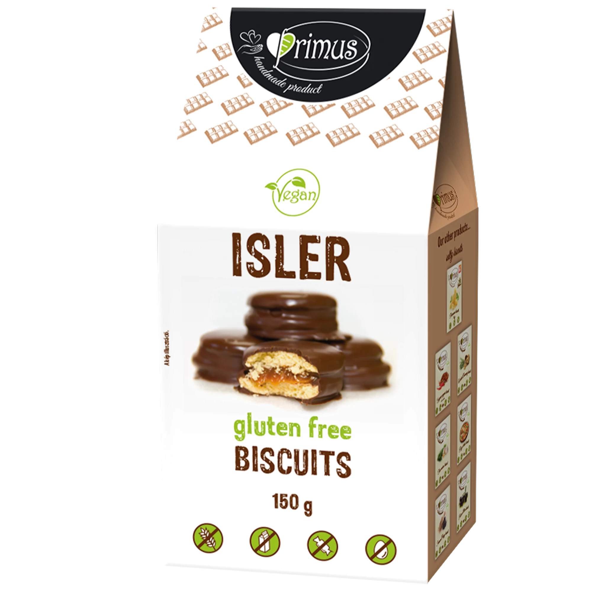 Összetevők: Tápióka keményítő,barnarizsliszt,kókuszolaj, zabpehelyliszt, kajszibarack lekvár édesítőszerrel(kajszibarack 40 %, maltitol, fruktóz, oligofruktóz, polidextróz, pektin, karragén, kálium-szorbát, citromsav, aroma), kakaós étbevonó édesítőszerrel (édesítőszer: maltitol, teljes mértékben hidrogénezett növényi zsír (pálmamag), zsírszegény kakaópor (14,9 %), emulgeálószer (lecitinek és E476) szójalecitin,vanilia aroma, bambuszrost liszt,eritrit,utifűmaghéj liszt só,szódabikarbóna,citrom aroma,sutőpor(térfogat növelő szer),citromsav.
