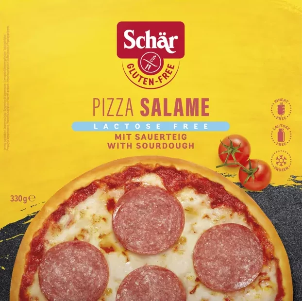 Összetevők: Feltét 51%: mozzarella sajt 40% (pasztörizált laktózmentes tej, só, mikrobiális oltóanyag, savanyúságot szabályozó: citromsav) , paradicsompüré 34% , füstölt szalámi 19% (sertés, só, dextróz, fűszer- és gyógynövénykeverék, antioxidáns: nátrium-aszkorbát; természetes aroma, tartósítószer: nátrium-nitrit, nátrium-nitrát, kálium-nitrát) , jódozott só (só, kálium-jodid) , oregánó . Alap 49%: kukoricakeményítő , víz , rizsliszt , kovász (rizsliszt, víz) 12% , sűrítő anyag: cellulóz, hidroxi-propil-metil-cellulóz ; rizskeményítő , extra szűz olívaolaj 3.5% , élesztő , kukoricaliszt , napraforgóolaj , jódozott só (só, kálium-jodid) , gyümölcs kivonat (szentjánoskenyérmag, alma) , cukor , térfogatnövelő szer: nátrium-hidrogén-karbonát, glükono-delta-lakton ; savanyító: borkősav, citromsav