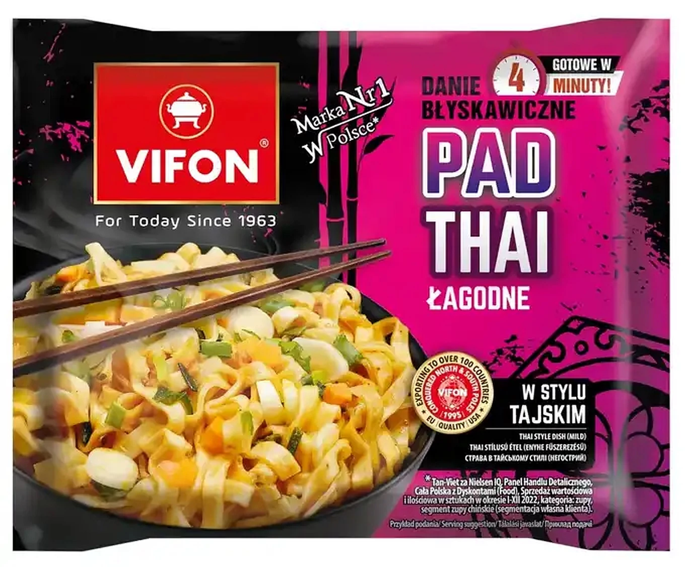 Összetevők: tészta (71,7%): BÚZAliszt, pálmazsír, keményítő, só, cukor, térfogatnövelő szerek: kálium-karbonátok, nátrium-karbonátok; stabilizátorok: cellulózgumi, guargumi; kurkuma, színezék: riboflavinok; szósz (27,8%): víz, cukor, finomított pálmaolaj, tamarind paszta, fokhagyma, mogyoróhagyma, só, módosított keményítő, fehérítőszer (glükózszirup, pálmazsír, stabilizátorok: E 340, E 451; kazeinátok (TEJ), emulgeálószer: E 471, E 472e; csomósodást gátló anyag: E 551), GARNÉLARÁKpor (RÁKFÉLÉK), élesztőkivonat, HALszósz (szardella családokba tartozó HALFAJOK, só), ízfokozók: dinátrium-guanilát, dinátrium-inozinát; SZEZÁMolaj, GARNÉLARÁKolaj (RÁKFÉLÉK), savanyúságot szabályozó anyag: ecetsav; hidrolizált SZÓJAfehérje, aromák (FÖLDIMOGYORÓ, SZÓJABAB, TEJ tartalmaz), színezékek: karamell, paprikakivonat, karotinok; tartósítószer: kálium-szorbát, nátrium-benzoát; szárított zöldségek (0,5%): sárgarépa, metélőhagyma.