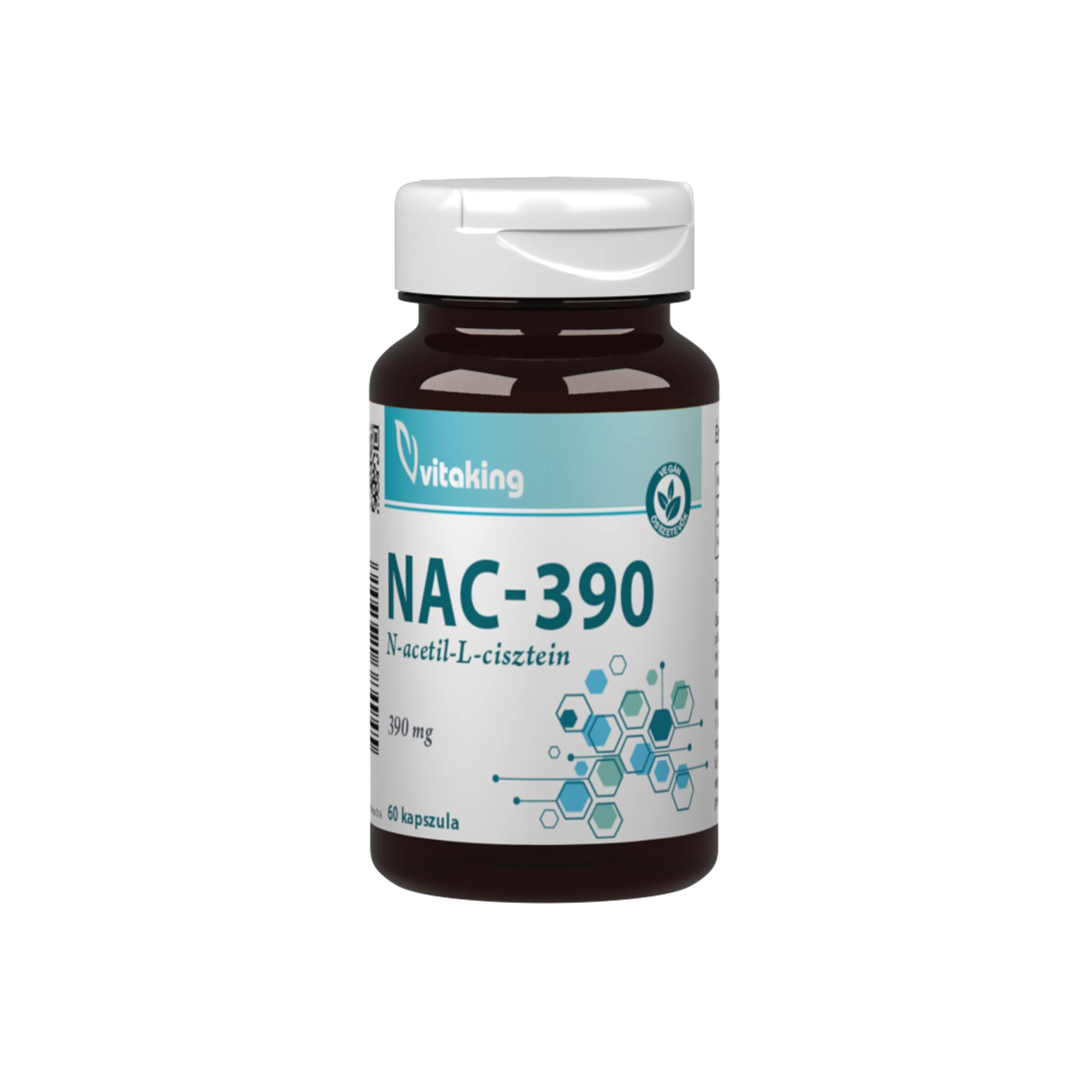 Az N-acetil-L-cisztein (NAC) egy bioaktív vegyület, ami a cisztein aminosav egy stabil formája, és egyben a glutation előanyaga.A Vitaking NAC kapszula adagonként 390 mg N-acetil-L-ciszteint tartalmaz – ez az L-cisztein aminosav egy stabil, könnyen adagolható formája. A formula 100%-ban vegán, és kizárólag növényi kapszulahéjjal készül.390 mg N-acetil-L-cisztein kapszulánkén.100% vegán formula. Hazai gyártás, GMP minőség (Jó Gyártási Gyakorlat).Egyszerű adagolás: napi 1 kapszula.